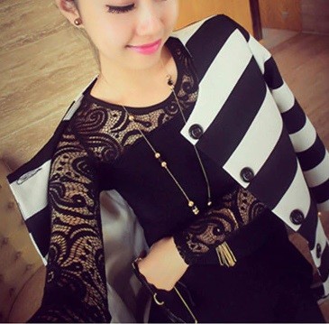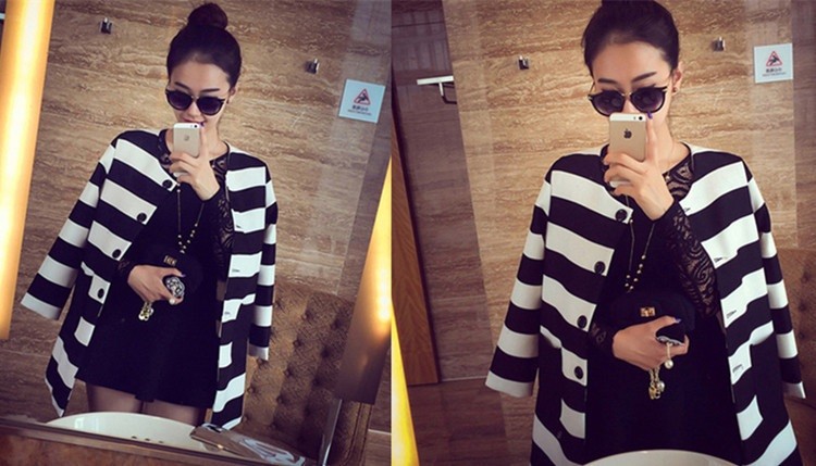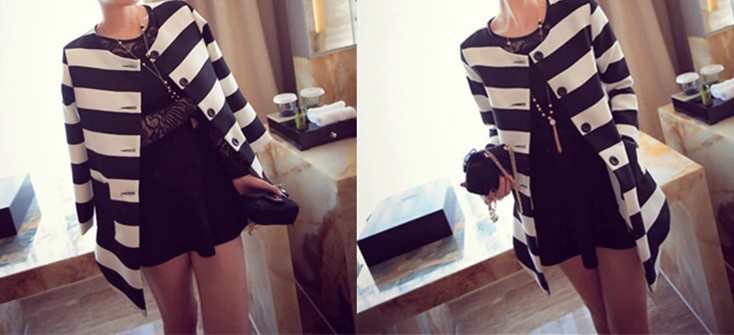 Γυναικείο ριγέ παλτό - Μαύρο-άσπρο