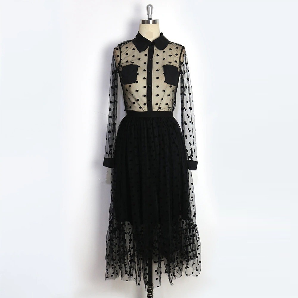 Γυναικείο τοπ και φούστα με πουά