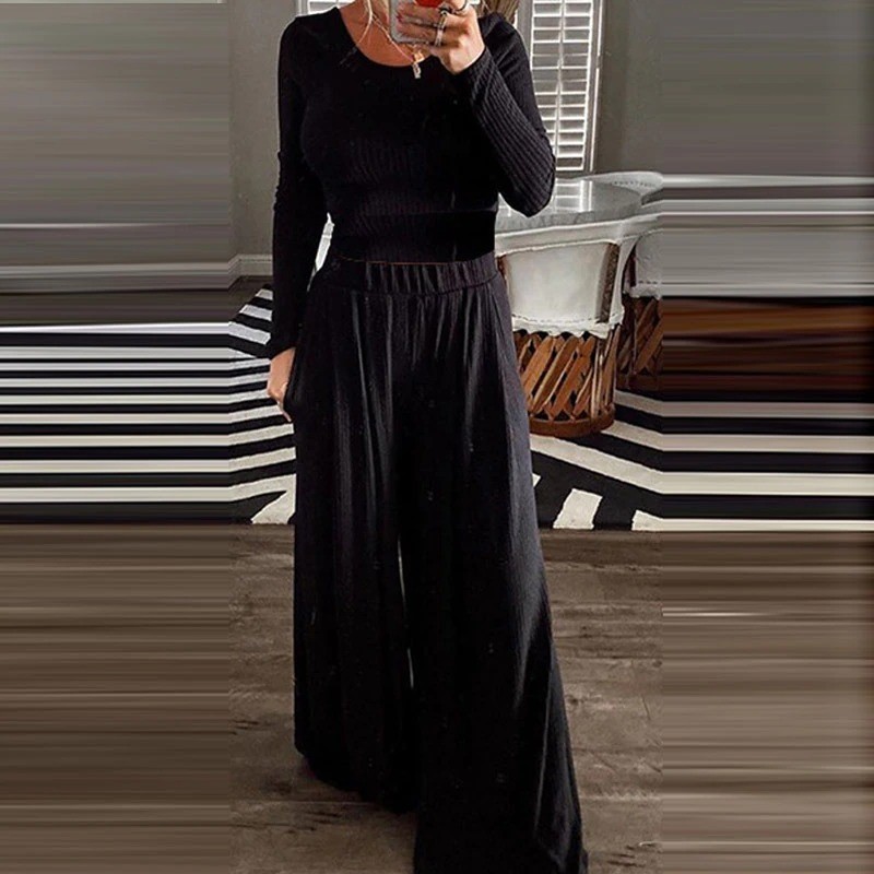 Γυναικείο τοπ με μακριά μανίκια και παντελόνι