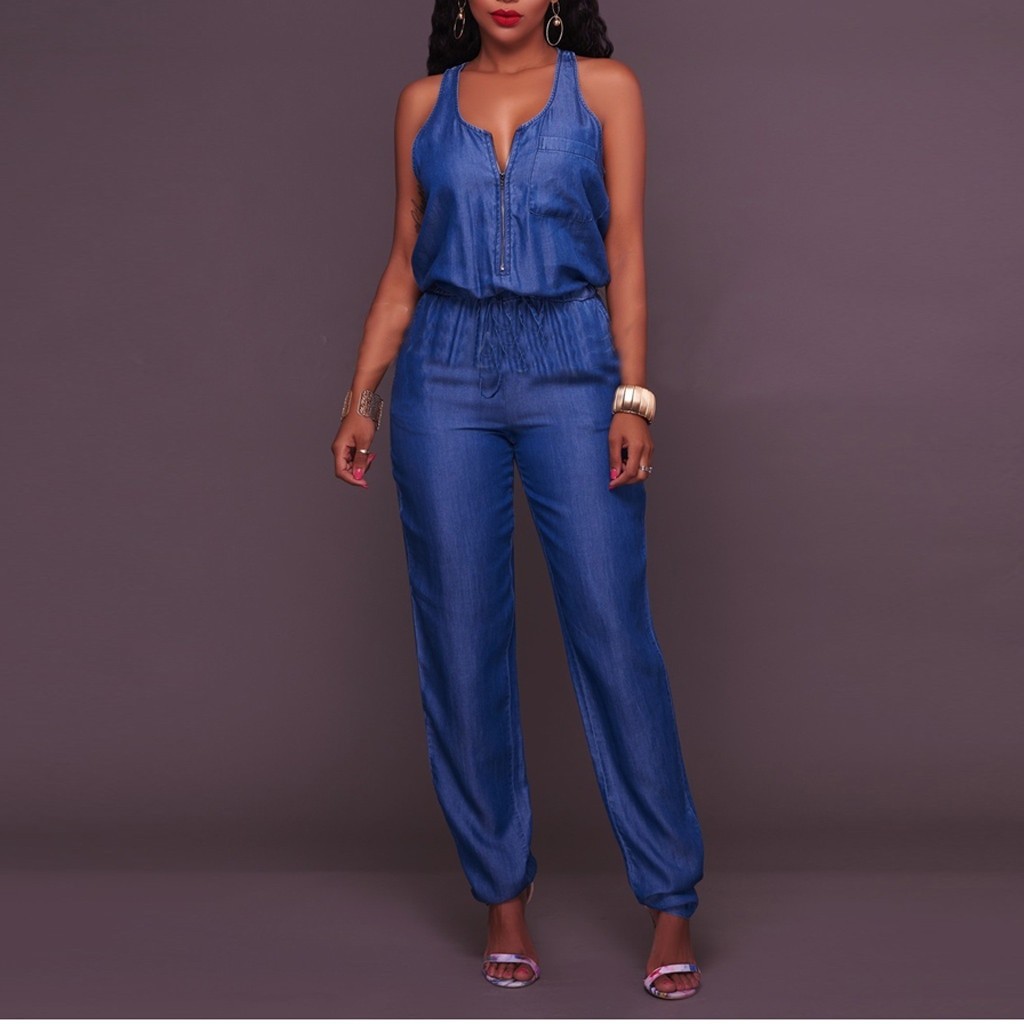 Γυναικείο τζιν ολόσωμο με φερμουάρ