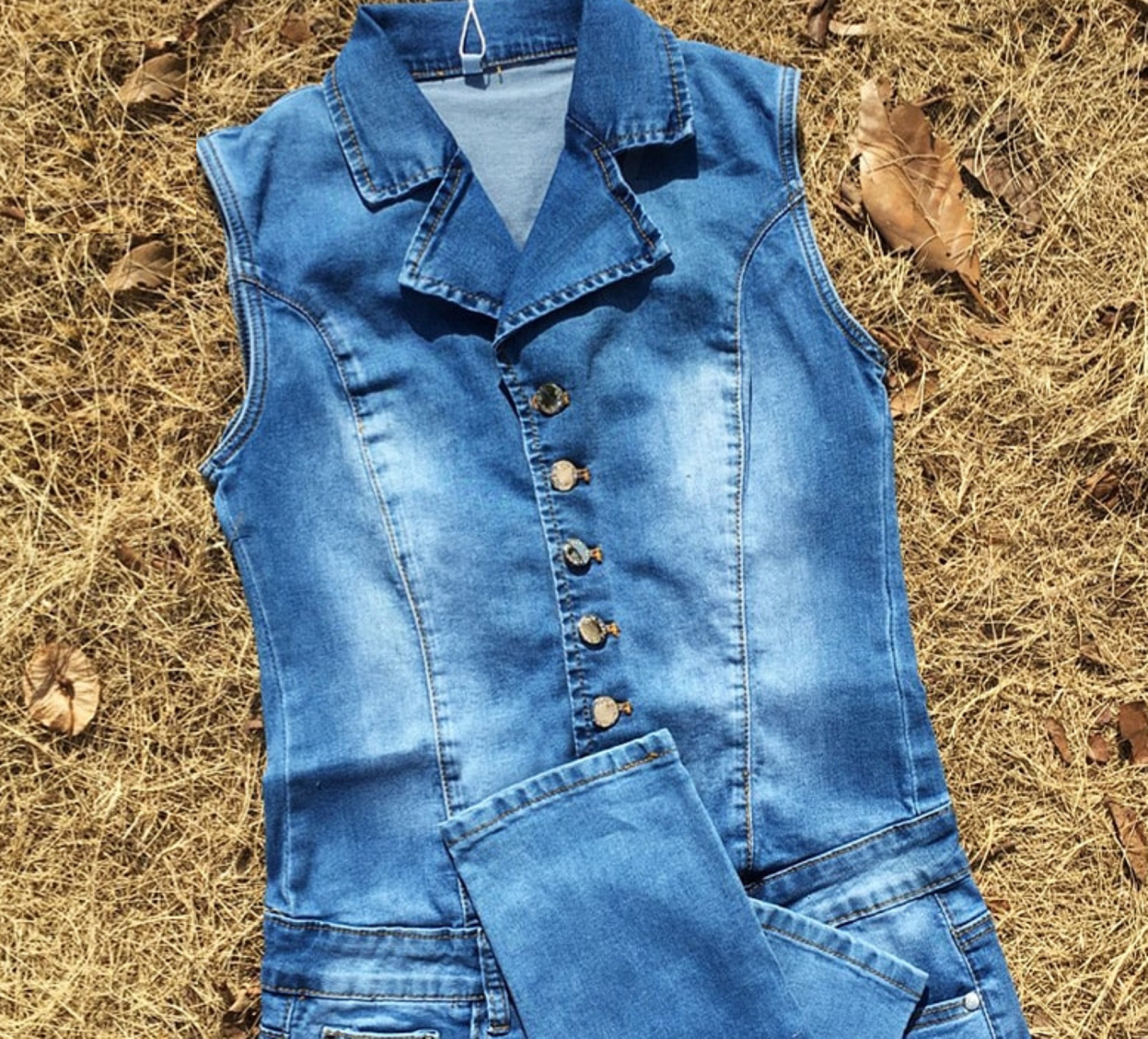 Γυναικείο τζιν ολόσωμο φόρεμα χωρίς μανίκια