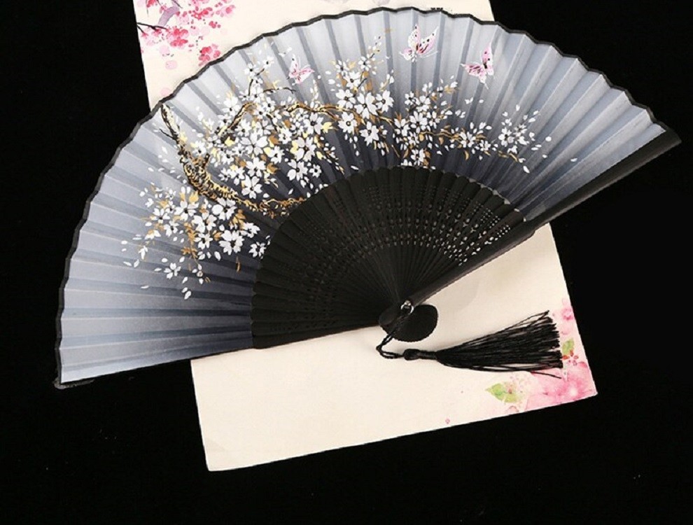Ιαπωνικός ανεμιστήρας με μοτίβο λουλουδιών