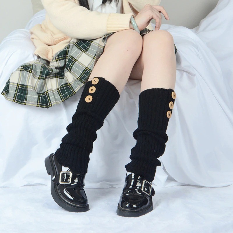 Αποκτήστε αυτές τις υπέροχες κάλτσες με κουμπιά! Οι κάλτσες είναι κατασκευασμένες από συνδυασμό ακρυλικού και βαμβακιού και είναι μαλακές και ευχάριστες στην επιδερμίδα. Θα ζεστάνουν όμορφα τα πόδια σας τις ψυχρότερες μέρες και φαίνονται ωραίες. Μήκος περίπου 40 εκ.