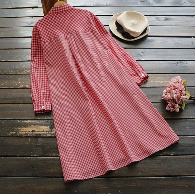 Άνετο γυναικείο πουκαμισάκι φόρεμα με μοντέρνο καρό σχέδιο.