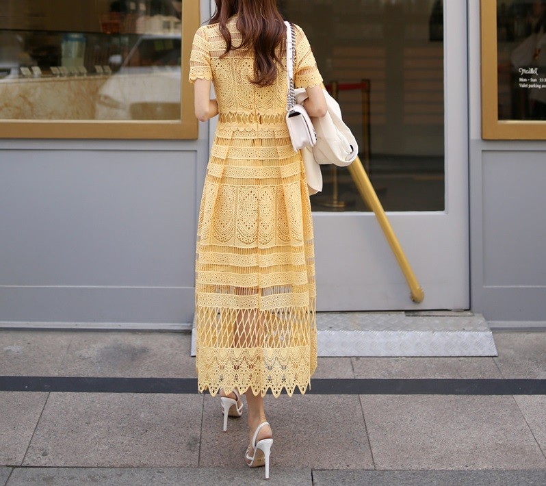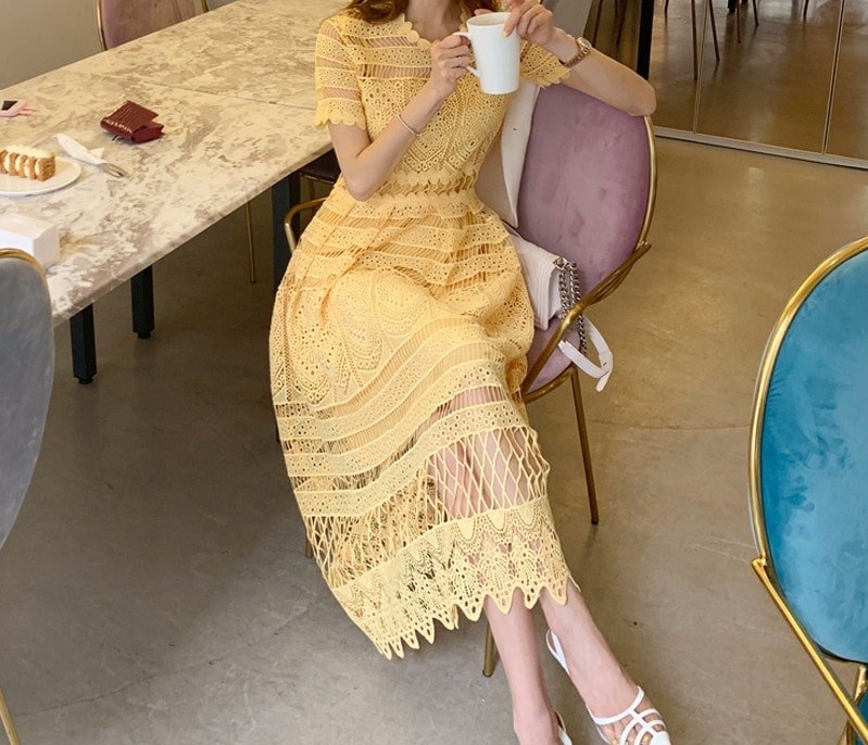 Κίτρινα δαντελένια φορέματα