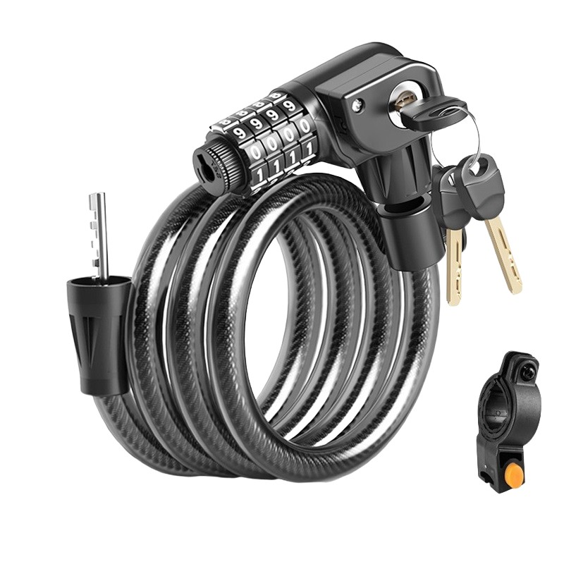 Αυτή η κλειδαριά ποδηλάτου με κωδικό 95 εκ. παρέχει υψηλή προστασία κατά της κλοπής. Το πακέτο περιλαμβάνει μια πρακτική βάση για το πλαίσιο του ποδηλάτου. Η κλειδαριά έχει μήκος 95 εκ.