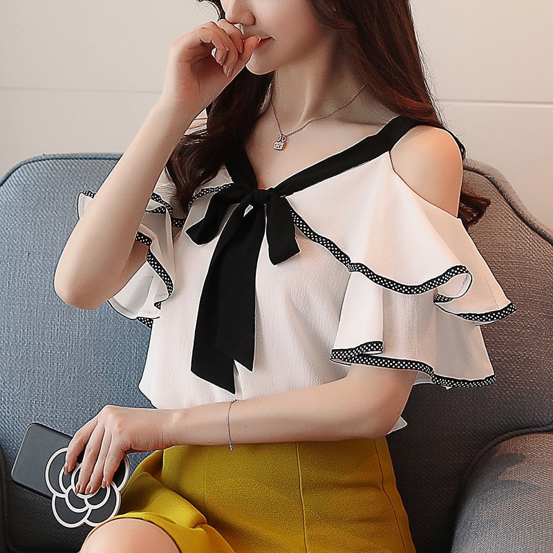 Κοντά μανίκια με φουσκωτά και εκτεθειμένους ώμους.