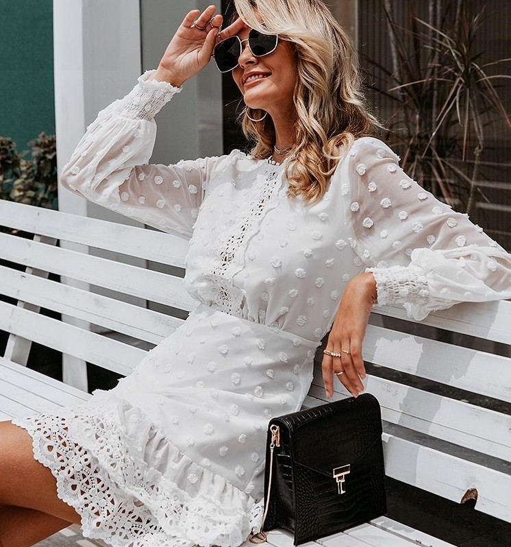 Κοντά φορέματα με δαντέλα και μακριά μανίκια A1