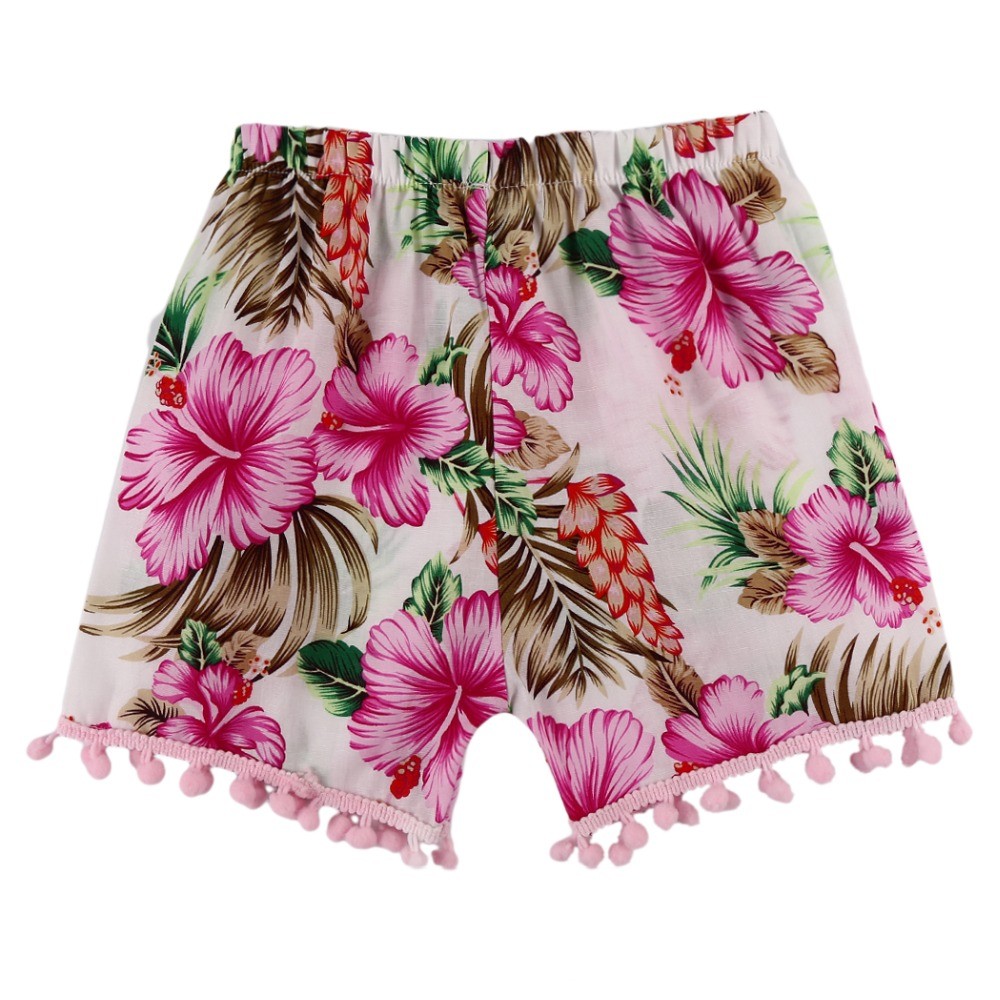 Υπέροχες κοντές σορτς κοριτσιών με εκτύπωση λουλουδιών και φούντες.