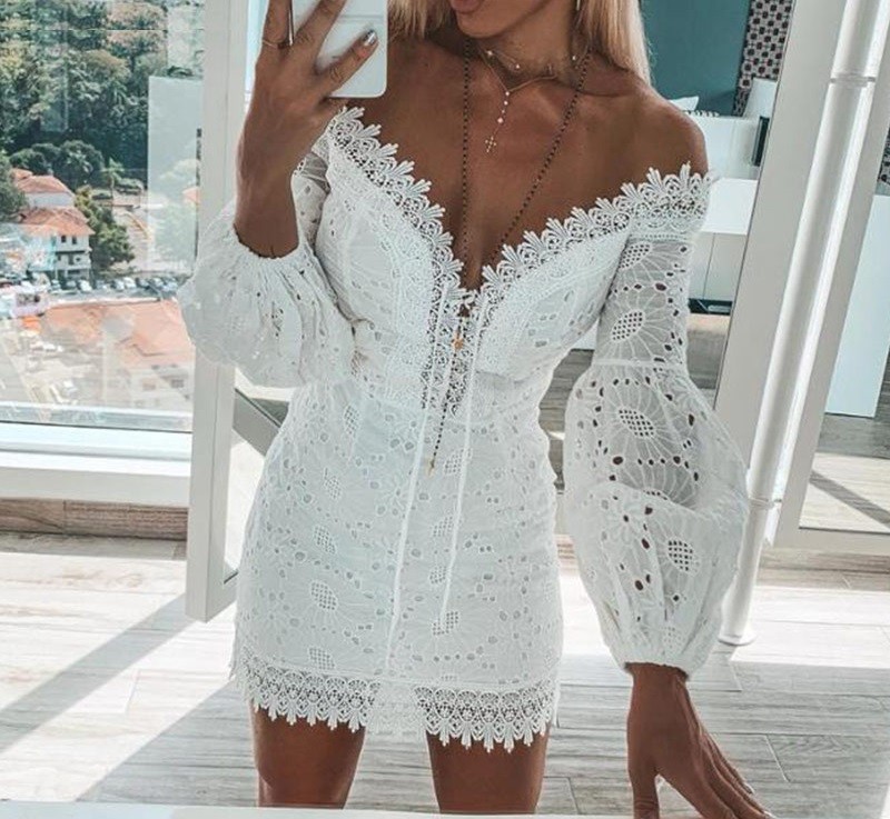 Σαγηνευτικό μίνι φόρεμα από τρυφερή δαντέλα!