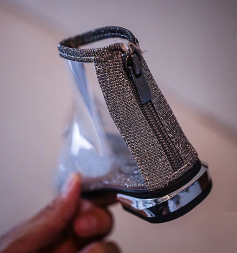 Τα παπούτσια έχουν μικρό τακούνι και κλείνουν με φερμουάρ.