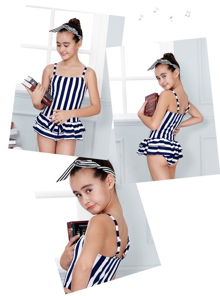 Κοριτσίστικα ριγέ μαγιό με φούστα J1894