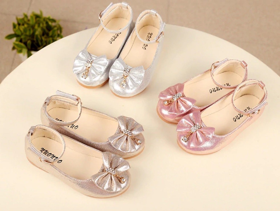 Οι μπαλαρίνες είναι λαμπερές και στην μπροστινή τους πλευρά έχουν ένα φιόγκο διακοσμημένο με πετράδια.