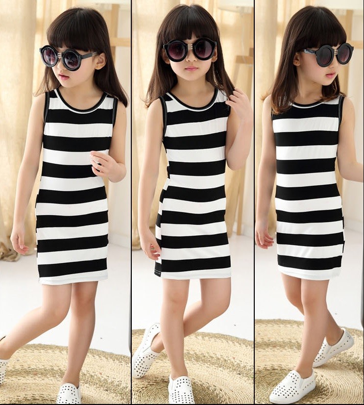 Μοντέρνο κοριτσίστικο φόρεμα με μαύρες και άσπρες ρίγες.