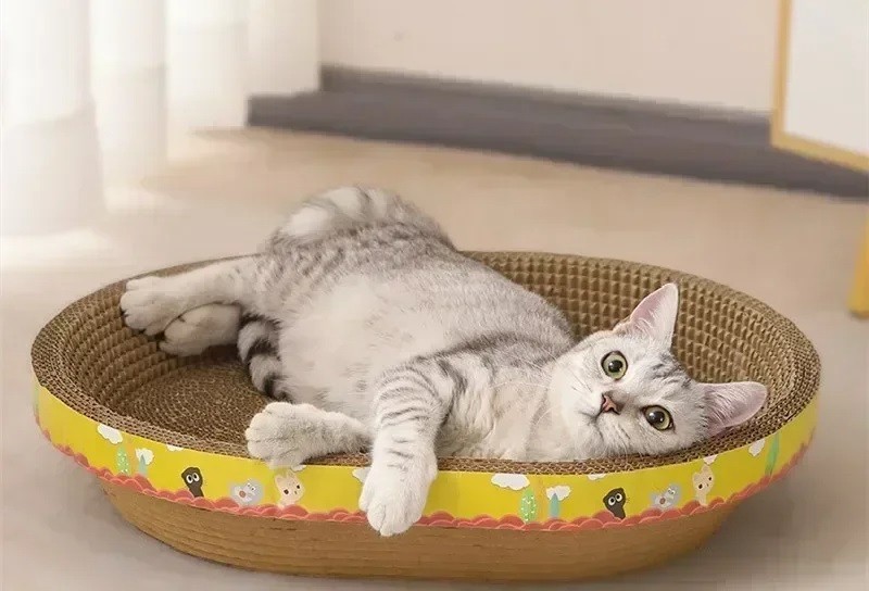 • Κατασκευασμένο από κυματοειδές χαρτόνι – προσελκύει τις γάτες για παιχνίδι και ακόνισμα νυχιών.