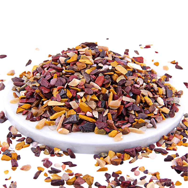 Κρυστάλλινοι λίθοι μοκαΐτη σε μορφή λεπτής θρυμματισμένης ύλης είναι φυσικό υλικό που εντυπωσιάζει με την χρωματική του ποικιλία. Χάρη στο μέγεθος 3–5 mm είναι κατάλληλοι για λεπτομερή εργασία και ακριβή τοποθέτηση σε διάφορους τύπους διακοσμήσεων. Οι λίθοι συνδυάζουν περισσότερες αποχρώσεις, μεταξύ των οποίων μπορεί να αναγνωριστούν κόκκινες, κίτρινες, μπεζ και πιο σκούρες αποχρώσεις. Η συσκευασία βάρους 100 g παρέχει επαρκή ποσότητα για ευρύτερη χρήση. Οι ακανόνιστες μορφές των επιμέρους κομματιών υποστηρίζουν την φυσική εμφάνιση του υλικού.