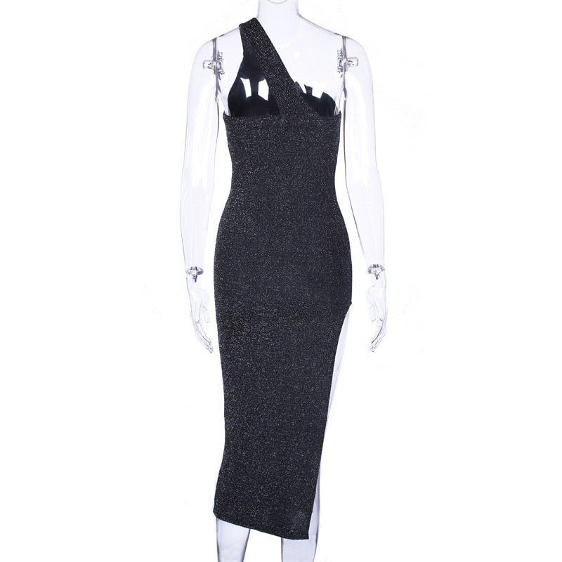 Σεξυ μαύρα λαμπερά φορέματα με ένα ώμο.