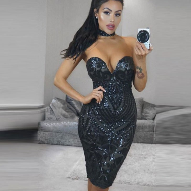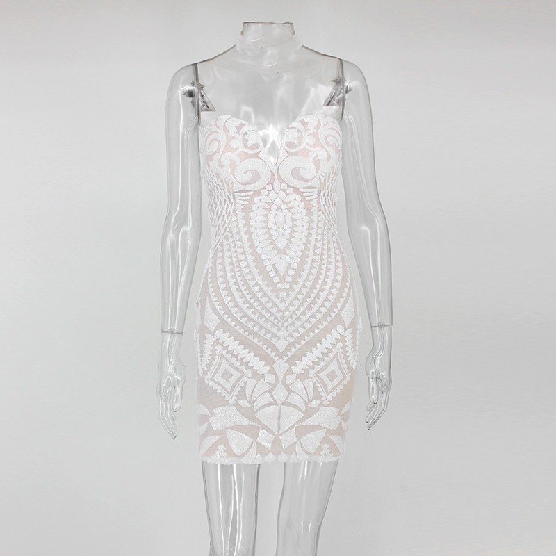 Λαμπερά μίνι φορέματα γύρω από το λαιμό από λαμπερό υλικό παγιέτας.