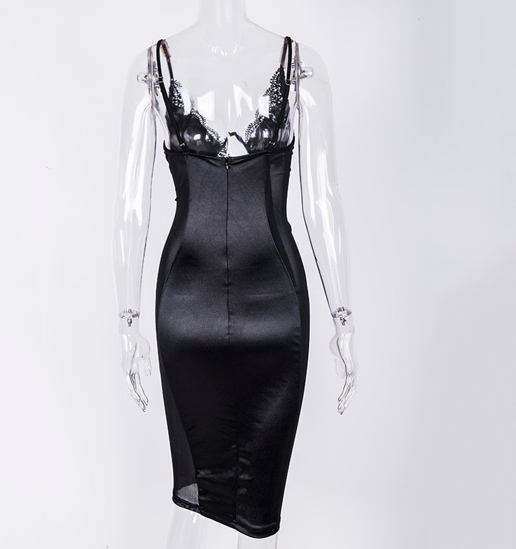 Σέξι λαμπερό φόρεμα με τιράντες και σατέν εμφάνιση.