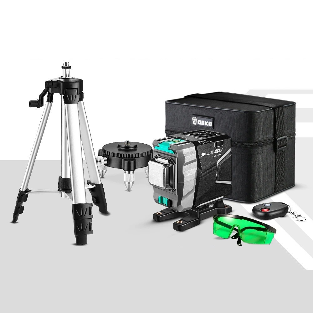 Περιεχόμενα συσκευασίας: 1x λέιζερ επίπεδο, 1x τροφοδοτικός προσαρμογέας, 1x προστατευτικά γυαλιά, 1x τσάντα, 1x βάση, 1x τρίποδο, 1x τηλεχειριστήριο