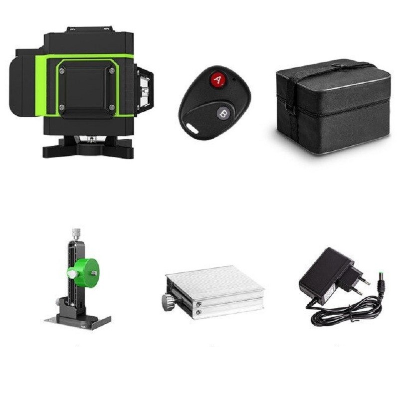 Περιεχόμενα συσκευασίας: 1x λέιζερ επίπεδο, 1x τσάντα, 1x προσαρμογέας τροφοδοσίας, 1x τοίχινή βάση, 1x ανυψωτικός σκελετός, 1x τηλεχειριστήριο
