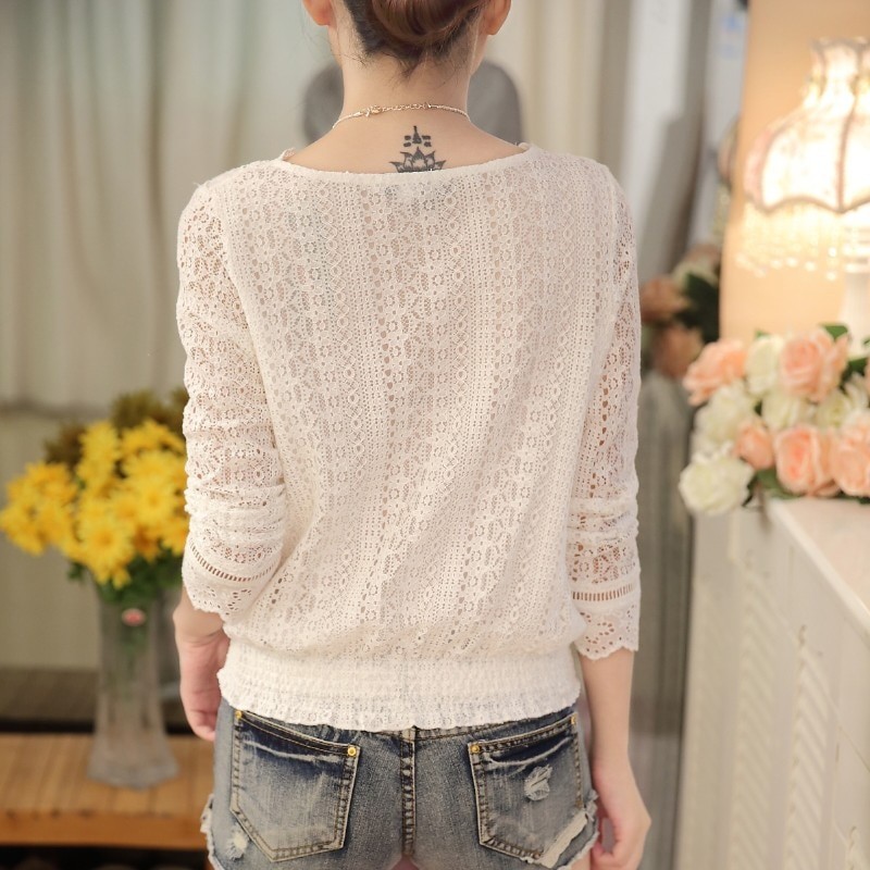 Όμορφη δαντελένια μπλούζα με μακριά μανίκια.