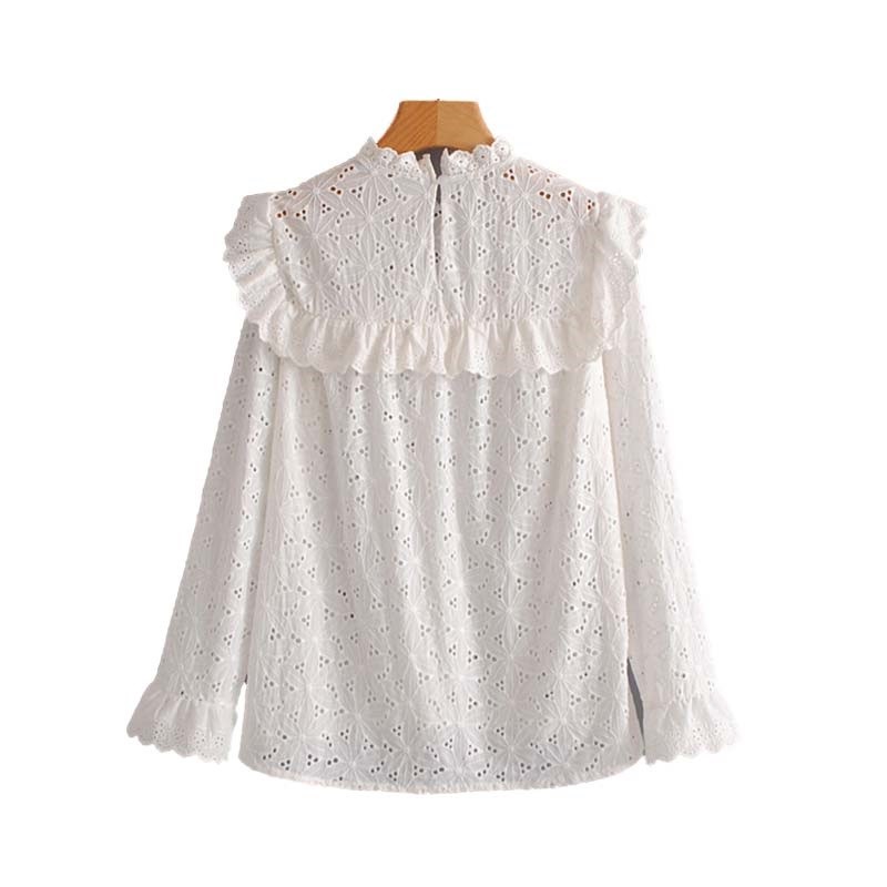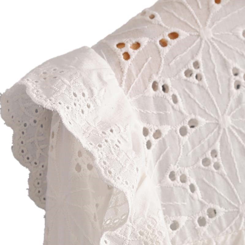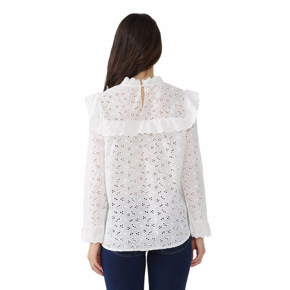 Κλασική λευκή μπλούζα με διακοσμητική τρυπητή ύφανση.