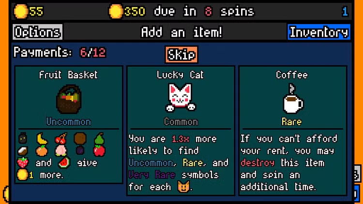 Luck be a Landlord συνδυάζει την απρόβλεπτη συγκίνηση των κουλοχέρηδων με τη στρατηγική βάθος και την επαναληψιμότητα των κλασικών deckbuilder. Επιλέξτε τα σύμβολα που θα προσθέσετε στη μηχανή σας και παρακολουθήστε πώς αλληλεπιδρούν για να κερδίσετε κέρματα σε κάθε γύρισμα – θα γεμίσετε το πακέτο σας με γάτες, πολύτιμους λίθους, φρούτα…;