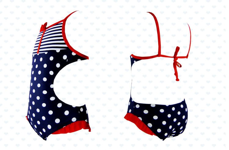 Μαγιό κοριτσιών με πουά - Σκούρο μπλε