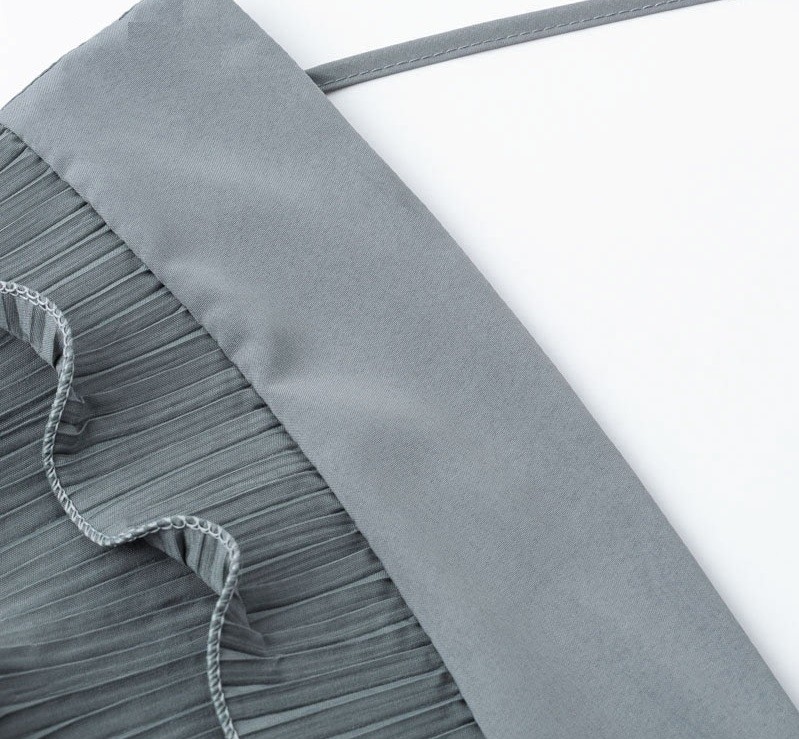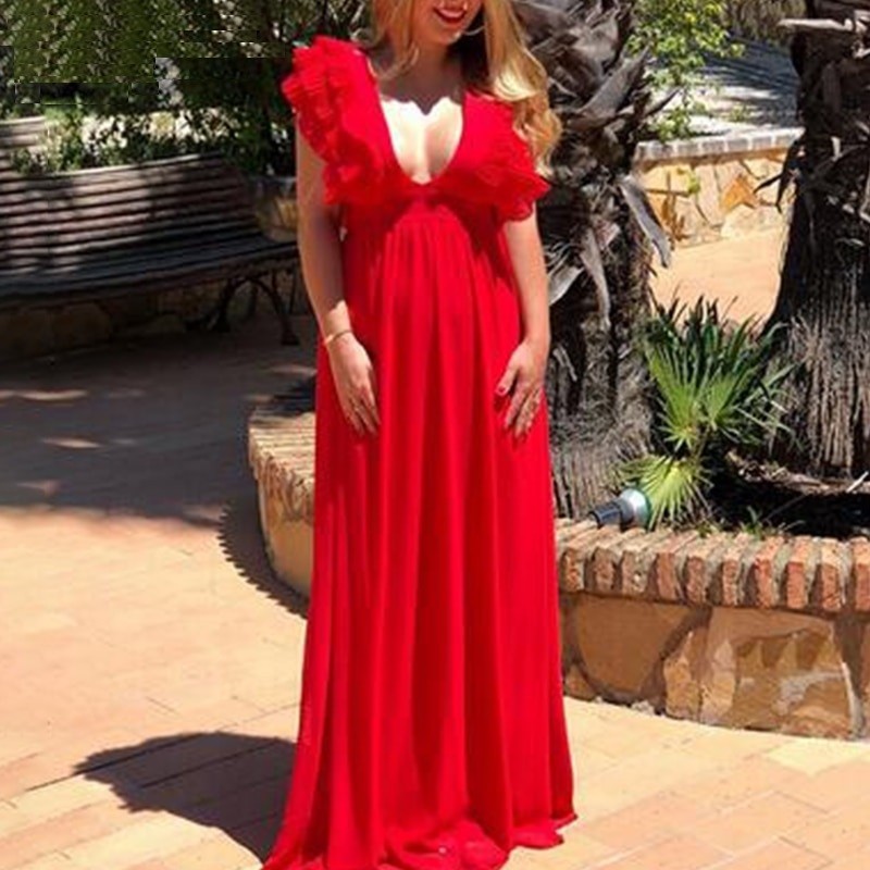 Γυναικεία μακριά φορέματα χωρίς μανίκια διακοσμημένα με βολάν. Βαθύ ντεκολτέ και ευχάριστο υλικό.