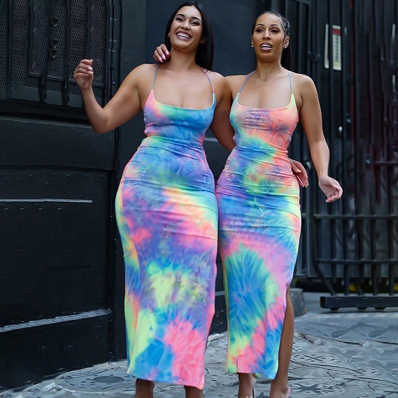 Όμορφα μακριά καλοκαιρινά φορέματα σε πολύχρωμο σχέδιο.