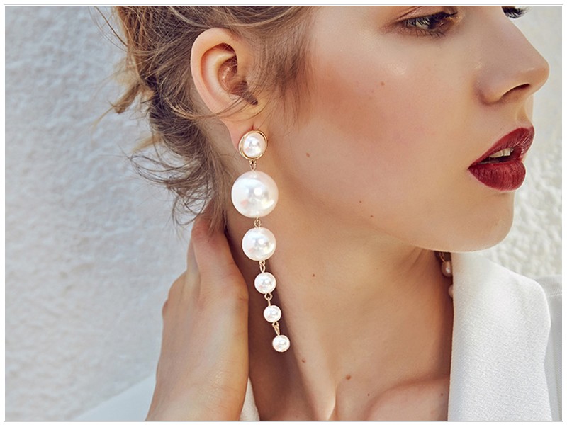 Μακριά σκουλαρίκια από πέρλες κατάλληλα όχι μόνο ως αξεσουάρ για νυφικά φορέματα, αλλά και για κοστούμια ή φορέματα για πάρτι.