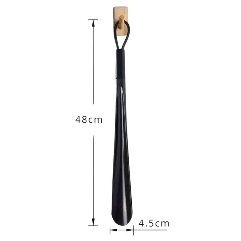 Η μακριά μαύρη πλαστική κουτάλα για παπούτσια μήκους 48 εκ. είναι ένας πρακτικός βοηθός για καθημερινή εφαρμογή χωρίς ανάγκη κάμψης. Χάρη στην ευελιξία και την ομαλή επιφάνειά της, είναι φιλική προς τα παπούτσια και το δέρμα και χρησιμοποιείται εύκολα. Ιδανική για ηλικιωμένους, άτομα με περιορισμένη κινητικότητα ή οποιονδήποτε εκτιμά την άνεση κατά την εφαρμογή. Ο εργονομικός σχεδιασμός επιτρέπει την εύκολη εισαγωγή της φτέρνας στο παπούτσι χωρίς να βλάπτεται το πίσω μέρος του υποδήματος. Είναι ελαφριά, συμπαγής και καθαρίζεται εύκολα.
