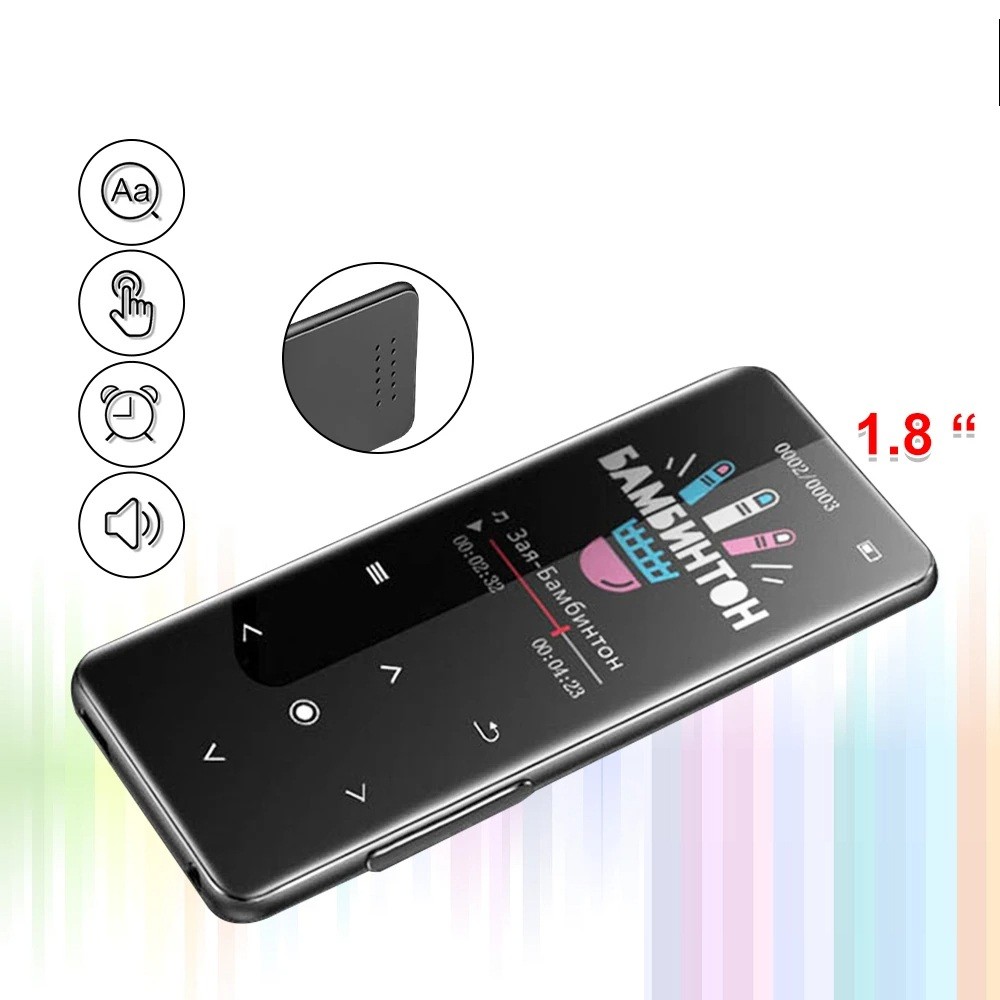 Μαύρος αναπαραγωγέας MP3 MP4 με Bluetooth 5.0 1,8" οθόνη FM ραδιόφωνο Θύρα για κάρτα SD έως 128 GB Αφής έλεγχος Βίντεο E-βιβλία
