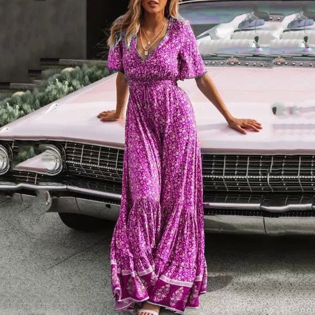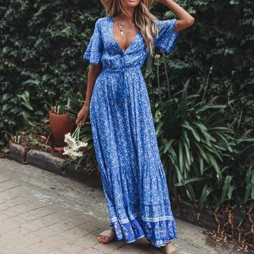 Μακριά καλοκαιρινά μάξι φορέματα με κοντό μανίκι.