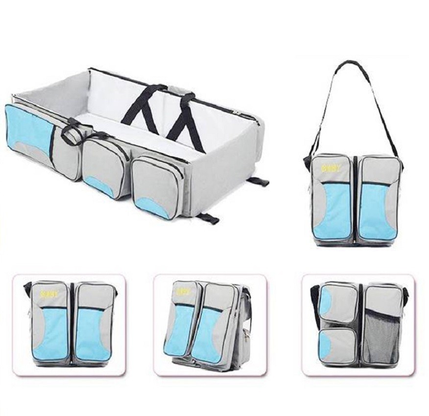Πολύ πρακτική αναδιπλούμενη τσάντα μητρότητας 3 σε 1 - τσάντα αλλαγής, μεταφερόμενη τσάντα και παιδική ταξιδιωτική κούνια.