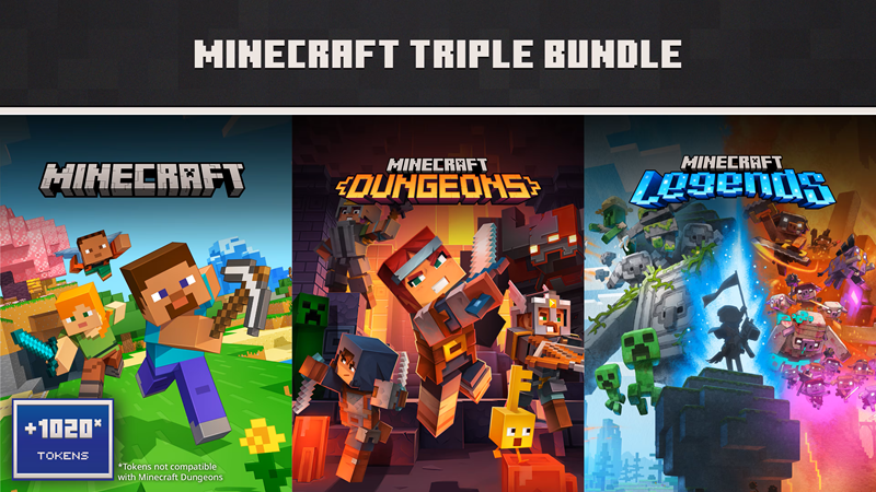 Εισέλθετε σε έναν τετραγωνισμένο κόσμο δημιουργικότητας, ενθουσιασμού και μυστηρίου με τρία παιχνίδια Minecraft σε ένα πακέτο. Εξερευνήστε και διαμορφώστε ατελείωτους, μοναδικούς κόσμους στο Minecraft, το τέλειο sandbox παιχνίδι, όπου μπορείτε να επιβιώσετε τη νύχτα ή να δημιουργήσετε ένα έργο τέχνης – ή και τα δύο! Συνδεθείτε με φίλους* ή παλέψτε μόνοι σας μέσα από επίπεδα γεμάτα δράση και θησαυρούς στο Minecraft Dungeons. Δημιουργήστε συμμαχίες και πολεμήστε σε στρατηγικές μάχες για να σώσετε τον Overworld στο Minecraft Legends. Θέλετε ακόμα περισσότερη περιπέτεια; Αυτό το πακέτο περιλαμβάνει επίσης 1020 minecoins, που μπορείτε να χρησιμοποιήσετε για να αγοράσετε συναρπαστικό περιεχόμενο που έχει δημιουργηθεί από δημιουργούς για το Minecraft: Bedrock Edition και το Minecraft Legends.