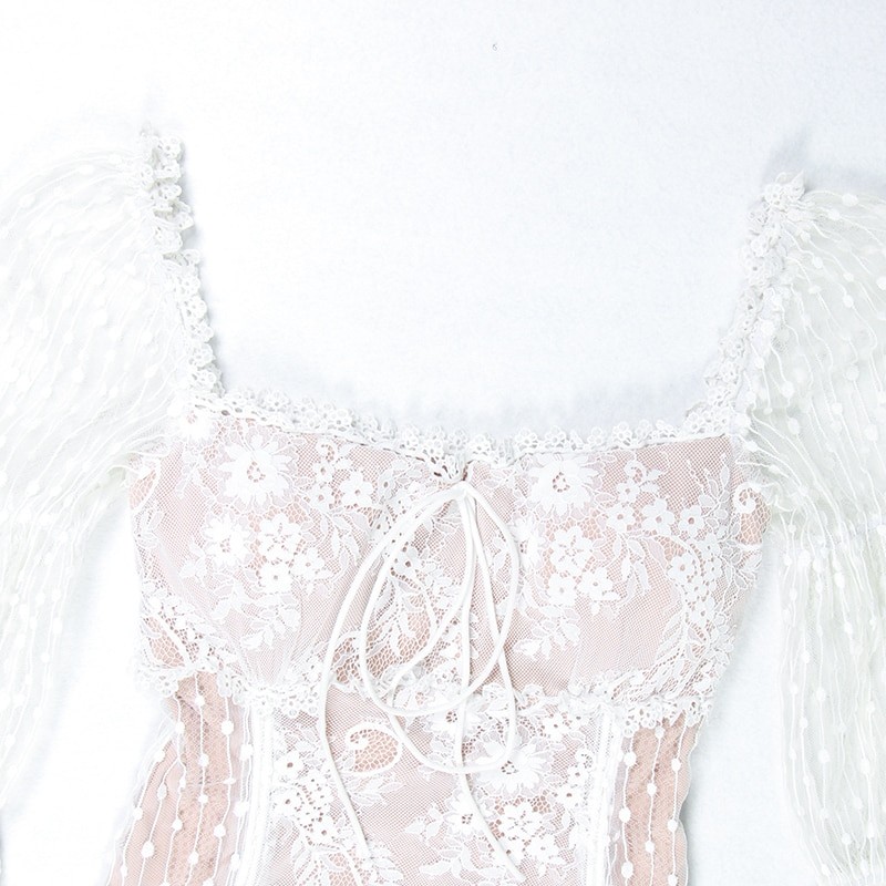 Γυναικείο δαντελένιο σέξι φόρεμα με μακριά μανίκια.