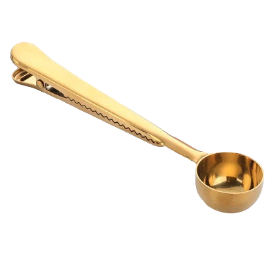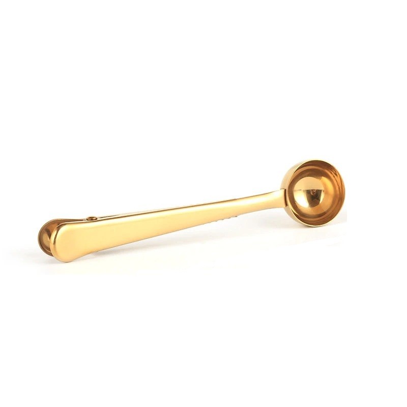 Αυτή η κουτάλα μήκους 18 εκ. έχει ενσωματωμένο σφιγκτήρα, με τον οποίο μπορείτε, για παράδειγμα, να κλείσετε μια σκισμένη σακούλα. Η κουτάλα είναι κατασκευασμένη από ανοξείδωτο ατσάλι και το μέρος που χρησιμοποιείται για την κουτάλα είναι ευρύ περίπου 3,5 εκ.