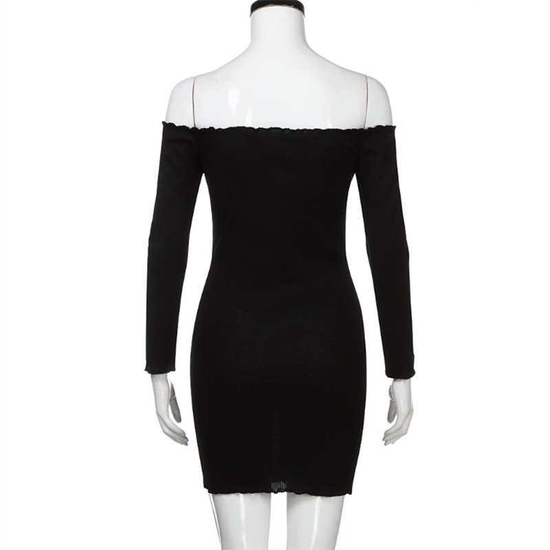 Σέξι μίνι φόρεμα με μακριά μανίκια και ανοιχτούς ώμους.