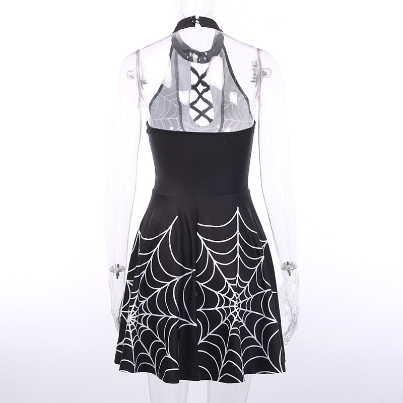 Εξωφρενικό μαύρο μίνι φόρεμα σε γοτθικό στυλ.