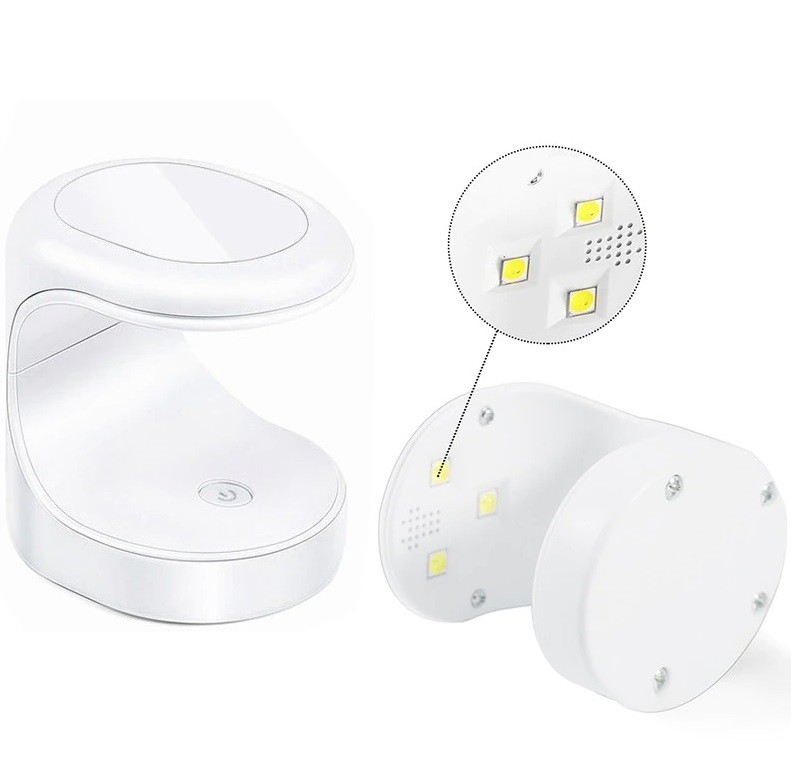 φθηνή μίνι UV/LED λάμπα νυχιών είναι πρακτική κυρίως για ταξίδια και οικιακή χρήση. Είναι εξοπλισμένη με 3 LED διόδους και χρονοδιακόπτη 30 δευτερολέπτων. Στερεώνει τέλεια τα gel νύχια. Το λευκό UV φως δεν βλάπτει τα μάτια ούτε το δέρμα.