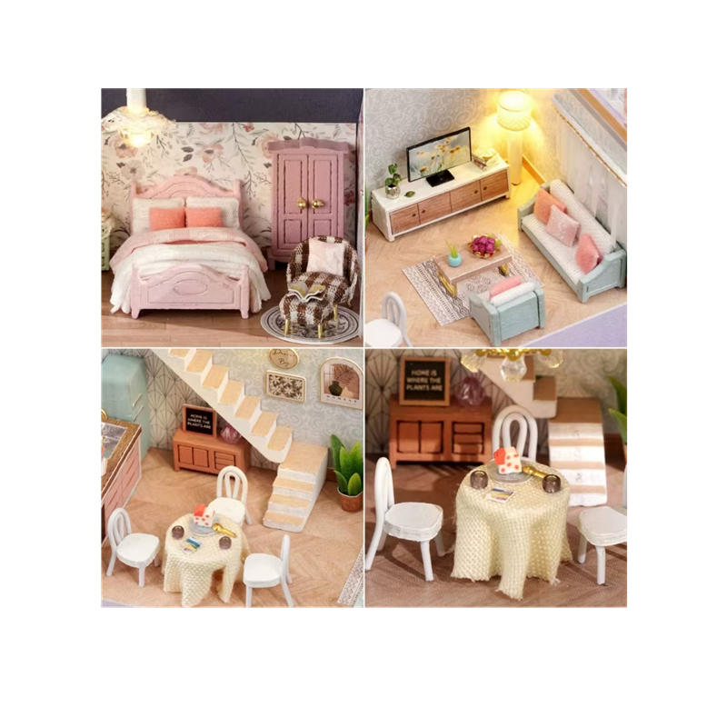 Δημιουργικό μίνι σπιτάκι με έπιπλα και LED φως για αυτοσυναρμολόγηση. Υπέροχο δώρο και διακόσμηση. Η κόλλα και οι μπαταρίες δεν περιλαμβάνονται στη συσκευασία. Πλήρης περιγραφή