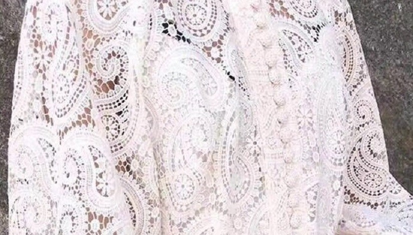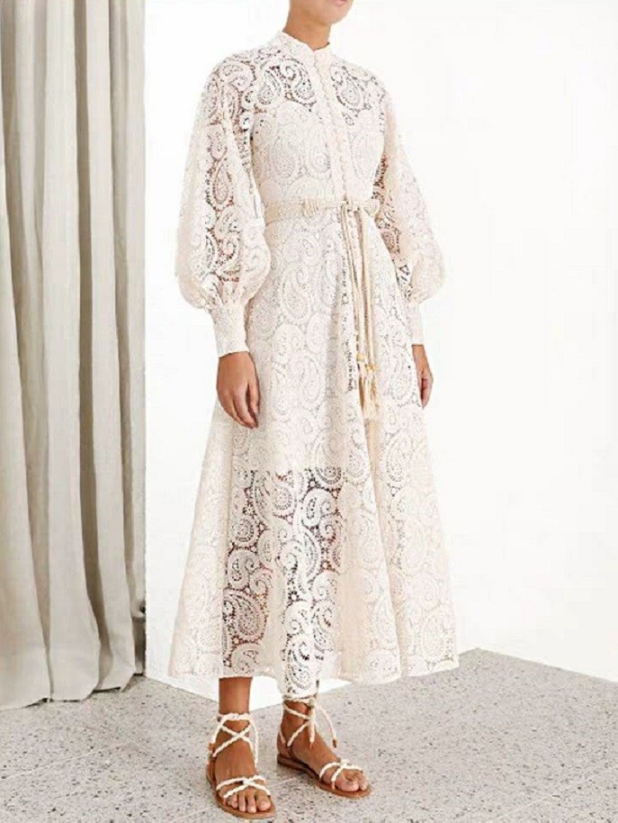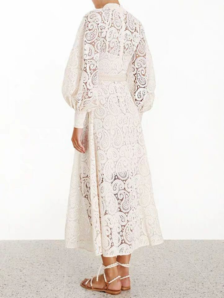 Δαντελένιο μίντι φόρεμα με μακριά μανίκια.