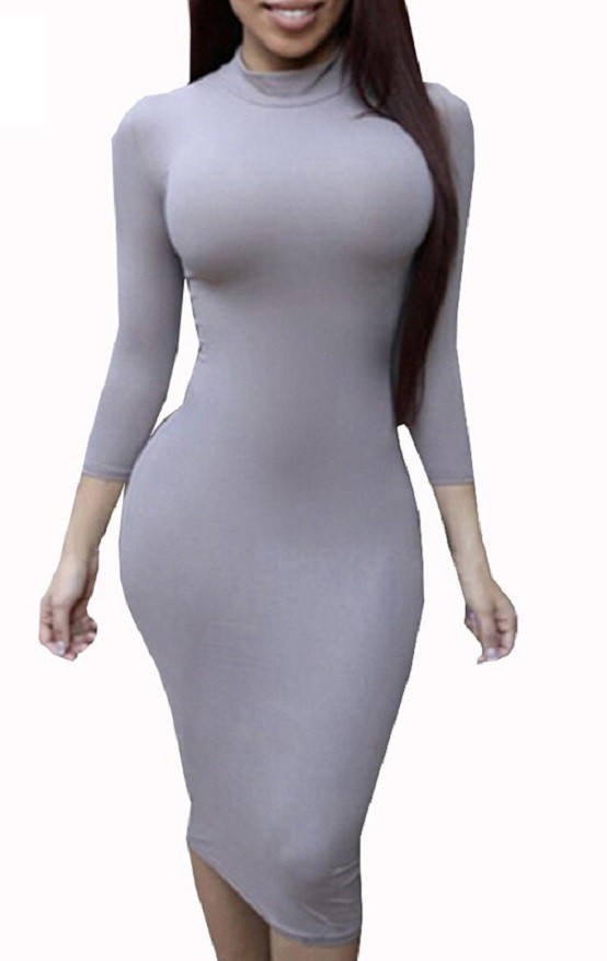 Γυναικείο ελαστικό μίντι φόρεμα με ψηλό γιακά και μακριά μανίκια.