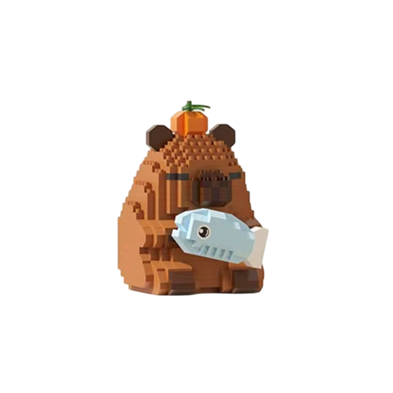 • Λεπτομερές μοντέλο καπυβάρ με ψάρι δημιουργημένο από μικρές οικοδομικές τουβλίτσες