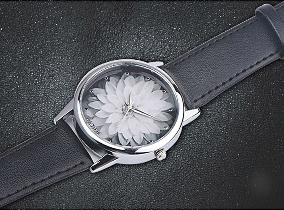Μοντέρνα γυναικεία ρολόγια με λουλούδι J2004