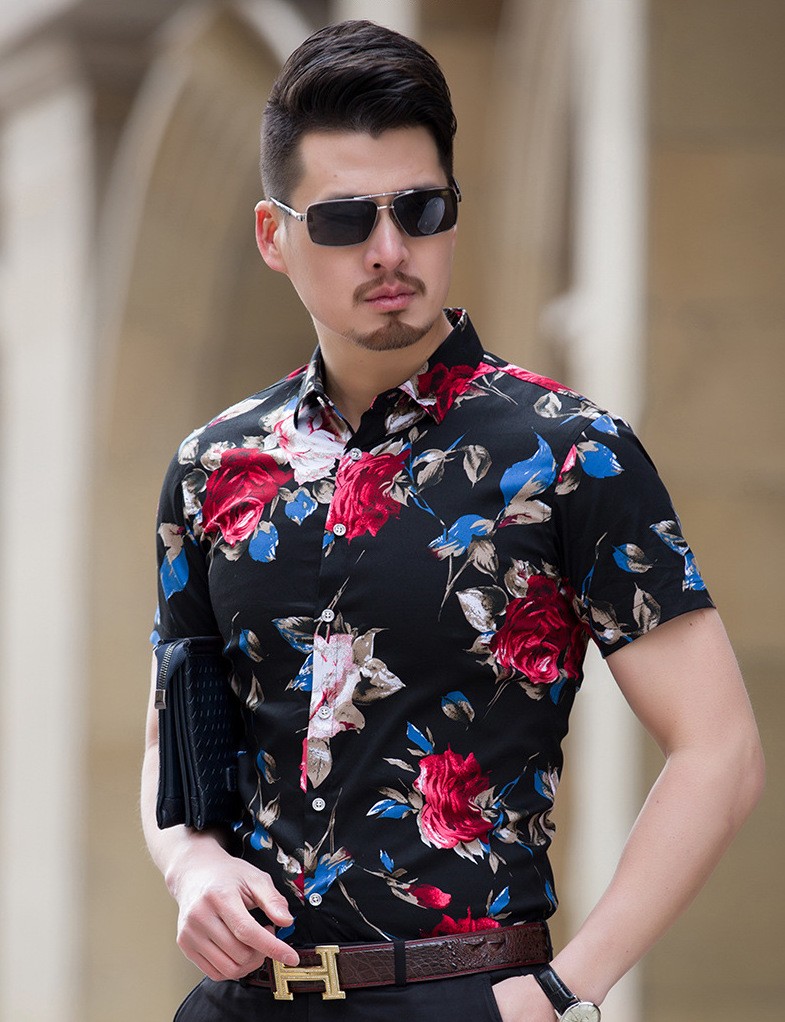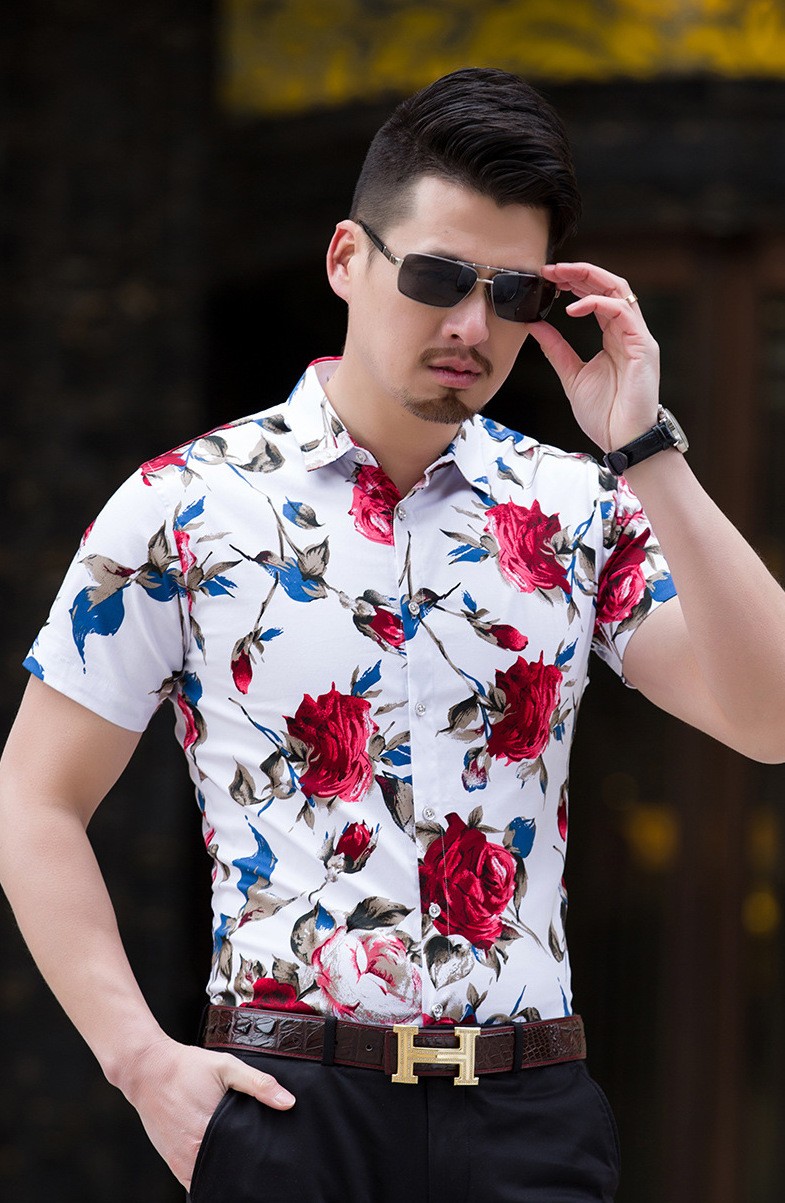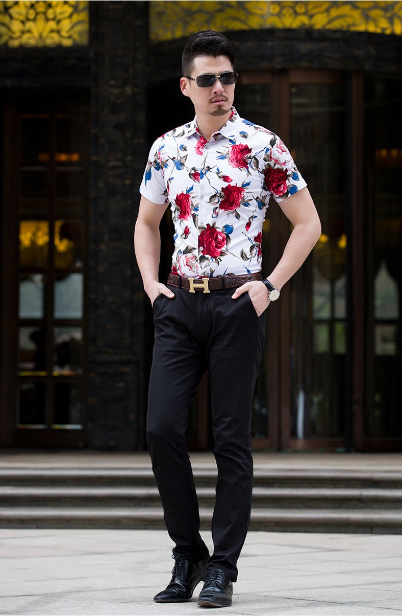 Μοντέρνα πουκάμισα με σχέδιο τριαντάφυλλου J715