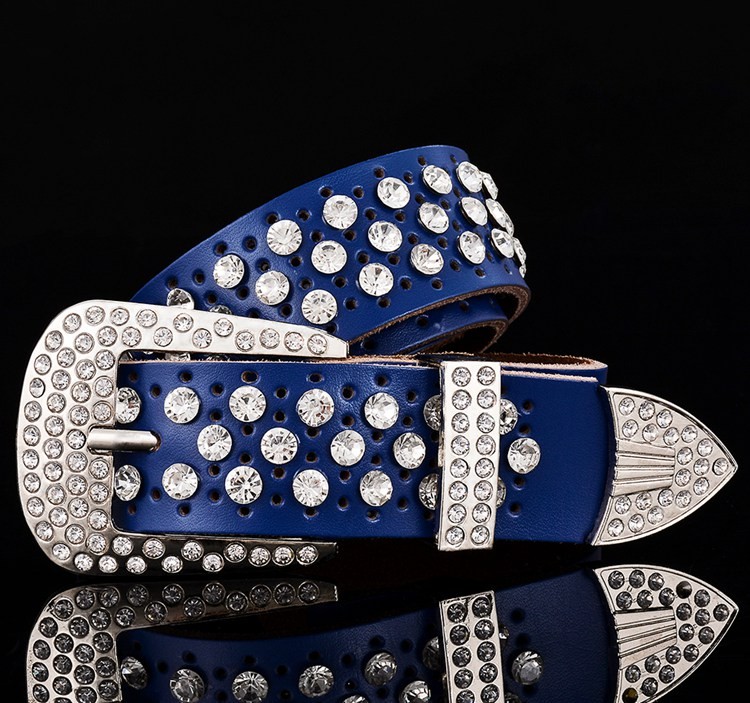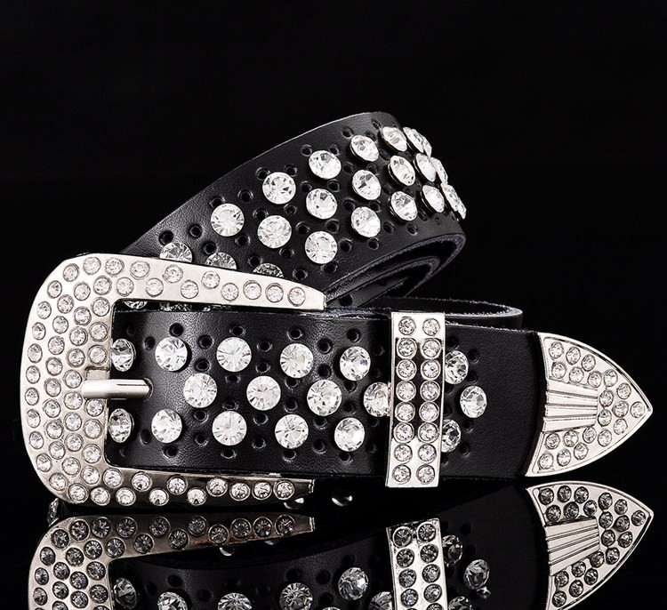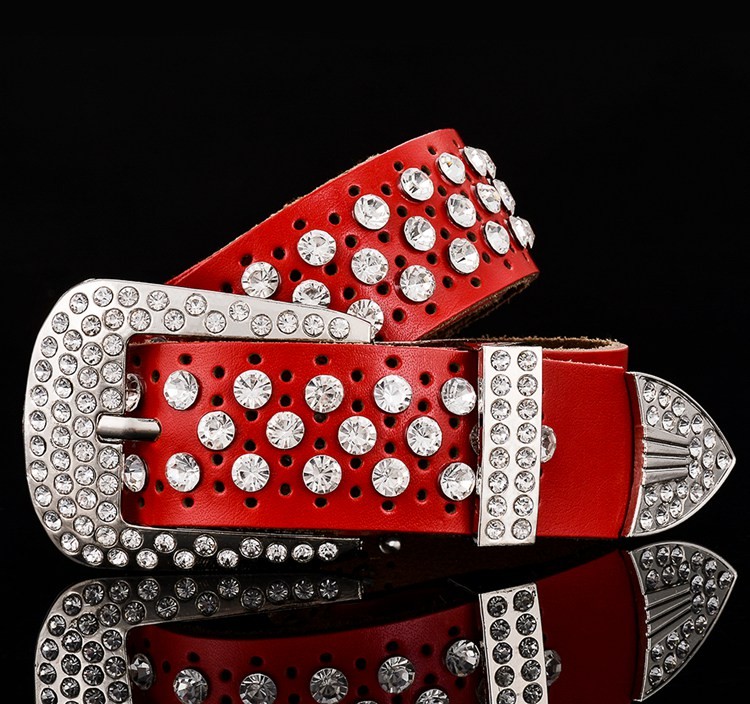 Μοντέρνη δερμάτινη ζώνη με πολυτελή πετράδια θα εμπλουτίσει την γκαρνταρόμπα κάθε γυναίκας.