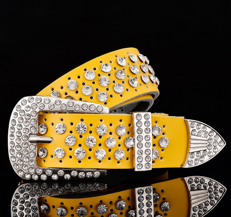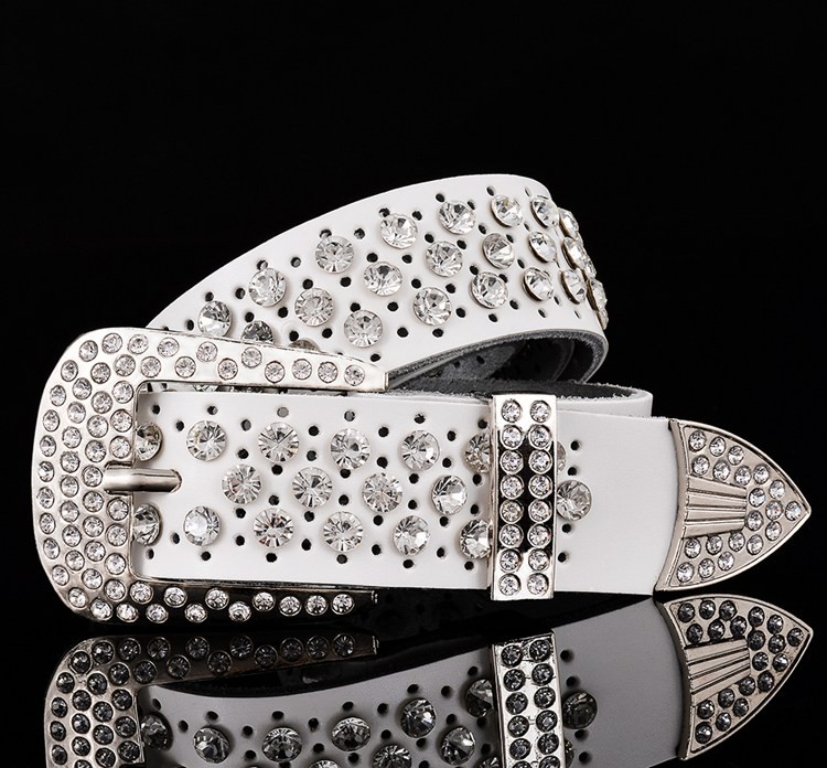 Μοντέρνη δερμάτινη ζώνη με πολυτελή πετράδια J3049